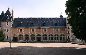 Ao lado do pavilhão de entrada, completando o lado norte do pátio, reina uma elegante capela ligada ao um maciço corps de logis (bloco) do lado este do mesmo pátio. O rés-do-chão, que suporta um andar principal e um telhado com mansardas, é atravessado ao centro por uma torre hexagonal que encerra uma escada em espiral.