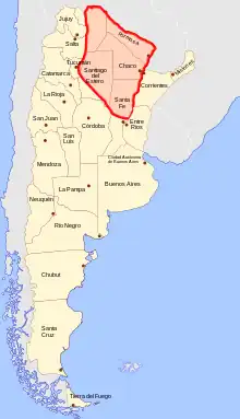 Formado pelas províncias de formosa, Chaco, parte norte de Santa Fé, Santiago del Estero e leste de Salta. Em alguns setores do norte da província de Córdoba e província de San Luis ocorre um ecótono com os pampas