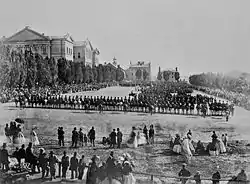 Utilizado desde o início como terreno de manobras militares, o Champ-de-Mars o será mais ainda a partir de 1886, quando se faz o remanejamento do arsenal da rua Craig. Este grande espaço no coração da cidade servirá também para outros fins. Um mercado público ao ar livre utiliza o local entre 1899 e a década de 1920, antes de ser substituído por um estacionamento. Mas durante a Segunda Guerra Mundial os carros dão lugar aos militares.