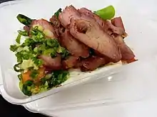 Char siu é carne de porco marinada com uma mistura doce, enfiada em espetos e assada num forno, numa preparação típica da culinária de Cantão. É servida simples, para ser comida com arroz ou massa, ou agregada a uma sopa ou um assado. [1] Esta preparação foi considerada uma das 50 melhores iguarias do mundo (em 28º lugar) por uma pesquisa da CNN. [2]