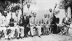 - Trecho baseado no artigo «Charanga» na Wikipédia em inglês (acessado nesta versão).
