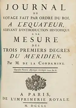 - Journal du voyage fait à l'Equateur servant d'introduction historique à la Mesure des trois premiers degrés du Méridien (1751)