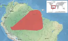 Pode ser encontrada nos seguintes países: Brasil, Guiana Francesa, Guiana, Suriname e possivelmente em Peru.[2]