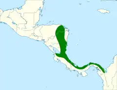 Pode ser encontrada nos seguintes países: Bolívia, Colômbia, Costa Rica, Equador, Nicarágua, Panamá e Peru.[1]