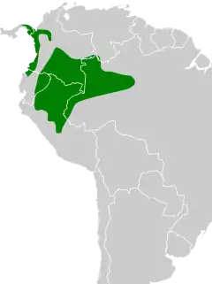 Pode ser encontrada nos seguintes países: Brasil, Colômbia, Equador, Panamá e Peru.[1]