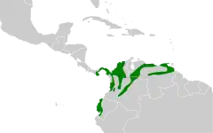 Pode ser encontrada nos seguintes países: Brasil, Colômbia, Equador, Panamá e Venezuela.[1]