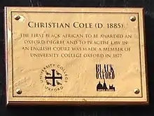 - Liddell, Marcus (18 de outubro de 2017). «Christian Cole: Oxford University's first black student». BBC News. Consultado em 18 de outubro de 2017