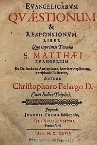 - Evangelicarum qvaestionum & responsionvm liber quo inprimis totum S. Matthaei ... 1612