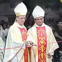 À esquerda, ao lado do bispo de Hyderabad, Samson Shukardin, O.F.M.
