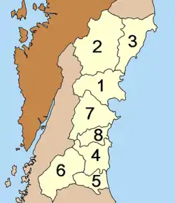 A província está subdividida em 8 distritos (amphoes). Os distritos estão por sua vez divididos em 70 comunas (tambons) e estas em 674 povoados (moobans).