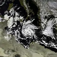 Em 27 de setembro de 1983, um Medicane foi observado no mar entre a Tunísia e a Sicília, contornando a Sardenha e a Córsega, chegando à costa duas vezes nas ilhas, antes de aterrissar em Tunes no início de 2 de Outubro e se dissipando. O desenvolvimento do sistema não foi estimulado pela instabilidade baroclínica ; em vez disso , a convecção foi incitada por temperaturas anormalmente altas da superfície do mar (TSMs) no momento de sua formação. Também apresentava um olho definitivo, altas nuvens cúmulos-nimbos, ventos intensos e sustentados e um núcleo quente. Durante a maior parte de sua duração, manteve um diâmetro de 200 to 300 km (120 to 190 mi) , embora tenha encolhido pouco antes do desembarque em Ajaccio para um diâmetro de 100 km (62 mi).[55]