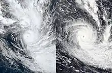 Ciclones Judy (esquerda) e Kevin (direita) perto do pico de intensidade em março