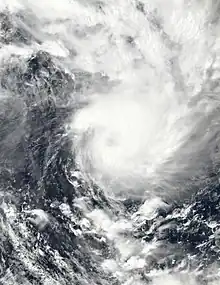 Em 27 de fevereiro, o Australian Bureau of Meteorology (BoM) informou que a baixa tropical 18U havia se desenvolvido dentro de um vale de monção de baixa pressão por volta de 180 km (110 mi) ao nordeste de Cooktown em Queensland.[30][31] Naquela época, o baixo tinha um centro de circulação de baixo nível mal organizado, porém foi melhorando à medida que o ambiente para a ciclogênese tropical tornou-se mais favorável, com 29–30 °C (84–86 °F) temperaturas da superfície do mar, cisalhamento moderado do vento e fraco fluxo equatorial em altitude.[32] No dia seguinte, o sistema progrediu para leste enquanto se organizava gradualmente, com seu centro de circulação de baixo nível sendo deslocado para leste por convecção profunda.[33] Em 1 de março, o JTWC emitiu um TCFA sobre o sistema, enquanto o BoM passou a responsabilidade de alertar o sistema para o FMS ao entrar na bacia do Pacífico Sul, designando o sistema como depressão tropical 09F.[34][35]