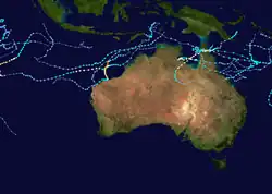 | Riley | 19 de janeiro - 30 | 120 (75) | 974 | Ilhas Molucas, Timor-Leste, Austrália Ocidental | Nenhum | Nenhum | |