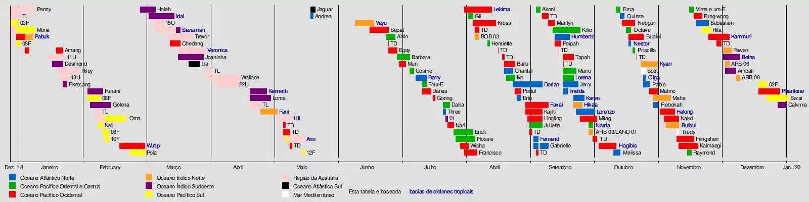| Idai | 4 a 16 de março | 195 (120) | 940 | Moçambique, Malawi, Madagáscar, Zimbabwe | ≥ $ 2 mil milhões | 1.303 | [19] |