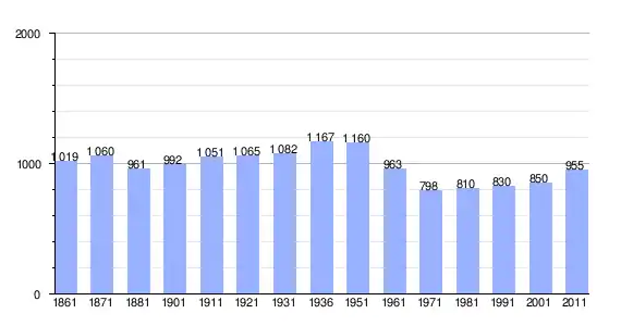 | Variação demográfica do município entre 1861 e 2011[3] |