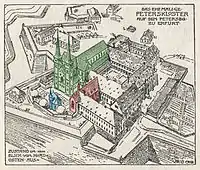 Em 4 de novembro de 1813, forças prussianas, austríacas e russas forças chegaram a Erfurt tentando fazer os franceses se renderem e abandonarem a Cidadela de Petersberg. Não houve rendição e um incêndio iniciou-se na fortaleza no dia 6 de novembro, às seis horas da manhã. Alguns edifícios pegaram fogo, incluindo o principal, a guarita, o mosteiro e partes da Igreja de São Pedro. Cento e vinte e uma casas no centro da cidade abaixo da cidadela também foram destruídas.[21]