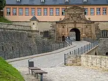 Um plano que o arquiteto de Erfurt, Caspar Vogel (c.1660-1663) havia criado para o rei sueco Gustavo II Adolfo serviu como modelo básico para a fortaleza, e seu trabalho foi substancialmente influenciado por Antonio Petrini (c.1620-1701) o arquiteto da corte imperial de Mogúncia.[14][5] Isto incluiu a construção das muralhas, dos baluartes e dos revelins chamados Anselm e Lotha, a principal porta de entrada (Peterstor), o edifício do comandante, três quartéis, que estão entre as mais antigas construções militares na Alemanha e os túneis dentro das paredes, chamados Horchgänge em alemão.[15][16]