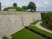 A fortaleza está cercada por 2180 metros de muralhas de pedra, que foram erguidas na primeira fase de construção, com início no ano de 1665. Elas formam base em formato de estrela em torno da fortaleza, feita com oito baluartes e quatro revelins e têm entre 1,2 e 6 metros de espessura e com de 8 a 26 metros de altura. Há pequenas torres de vigia. Na atualidade há apenas três revelins depois que o revelim Wilhelm foi removido no século XIX.[5]
