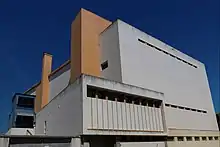 Edifício de linhas sóbrias, ao gosto da década de 1950, tem peças escultóricas da autoria de Martins Correia e José Farinha, aliando o talento às artes, representa as musas inspiradoras – Teatro, Poesia, Dança, Música e Talento.