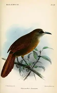- BirdLife International (2018). «Sepia-brown Wren Cinnycerthia olivascens». Lista Vermelha de Espécies Ameaçadas. 2018. Consultado em 2 de junho de 2021