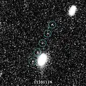 . doi:10.1086/317277 - Licandro; Oliva; Di MArtino (2001). «NICS-TNG infrared spectroscopy of trans-neptunian objects 2000 EB173 and 2000 WR106». Astronomy and Astrophysics. 373 (3): L29. Bibcode:2001A&A...373L..29L. arXiv:astro-ph/0105434