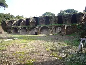 Escavações realizadas entre 1967 e 1975 revelaram a presença de uma casa romana senhorial, com uma estratificação em duas fases distintas. A primeira, da época de Trajano, tinha dois ambientes em opus mixtum que serviam para abrigar o pessoal que trabalhava na cisterna. Esta mesma estrutura foi transformada em um ambiente residencial no século IV, com uma sala absidada com treliças de madeira e decoração em opus sectile nas paredes e no piso. No século V, um dos ambientes foi utilizado como necrópole e ali foram encontrados cerca de mil sepulturas.