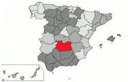 | Fronteiras: | Toledo (Norte), Cuenca (Noroeste), Albacete (Leste), Badajoz (Oeste) e Córdoba e Jaén (Sul). |
