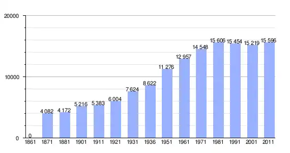 | Variação demográfica do município entre 1861 e 2011[3] |