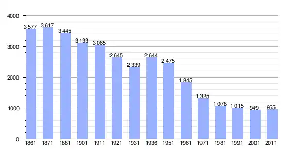 | Variação demográfica do município entre 1861 e 2011[3] |