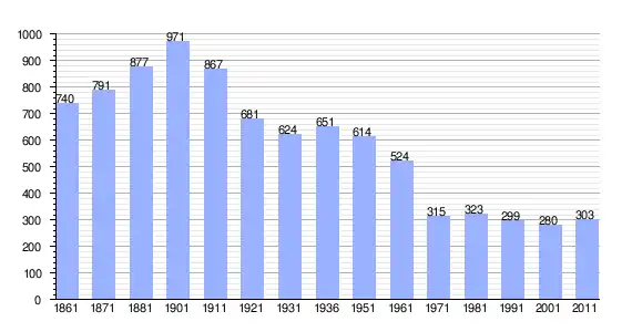 | Variação demográfica do município entre 1861 e 2011[3] |