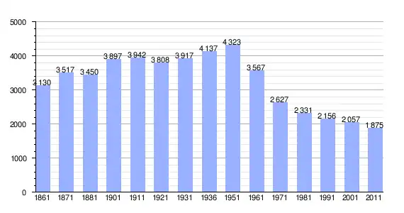 | Variação demográfica do município entre 1861 e 2011[3] |