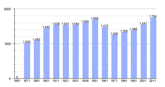 | Variação demográfica do município entre 1861 e 2011[3] |