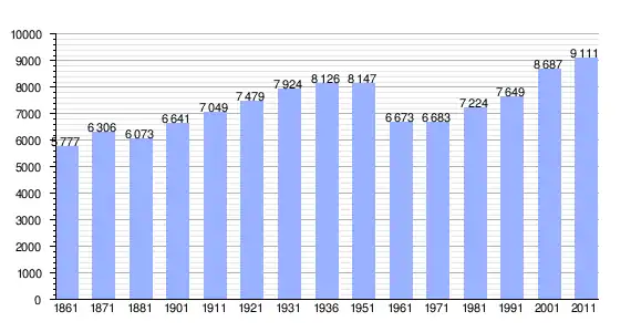 | Variação demográfica do município entre 1861 e 2011[3] |