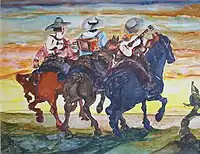 São bastante representativos dessa temática, entre outros, os painéis murais: “O Gaúcho” e “Transporte dos Lanchões, uma alegoria da Guerra dos Farrapos” (Acervo Banrisul, 1976), “Jesuítas e Bandeirantes” (UNISINOS, 1979) e “História e o Folclore do Rio Grande do Sul” (TRENSURB, 1986).