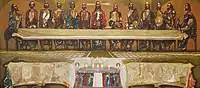 Assim, no polo oposto da alegria circense estão os temas sacros que Clébio pintou, de acordo “(...) com cores escuras e sóbrias da religiosidade (...)”. Exemplo bastante representativo dessa fase artística de Clébio é o afresco “Santa Ceia”, pintado em 1977, pertecente ao Acervo da UNISINO, em São Leopoldo.