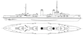 | Armamento | 12 canhões de 356 mm 24 canhões de 130 mm 4 canhões de 64 mm 6 tubos de torpedo de 450 mm |