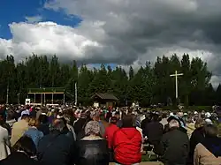 Uma ligeira modificação do tipo de igreja é a de eclésia . [31] As Eclésias incluem as características acima de igrejas, com a exceção de que são geralmente menos bem sucedidas na obtenção de adesão absoluta entre todos os membros da sociedade e não são o único corpo religioso. As igrejas estatais de algumas nações europeias se enquadram nessa tipologia.
