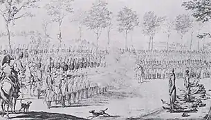 Um total de 23 civis e oficiais, incluindo Malet, Guidal e Lahorie, foram julgados em 29 de outubro de 1812 perante um conselho de guerra por traição e todos foram condenados. Todos, exceto 2, foram executados na planície de Grenelle em 31 de outubro.[3]