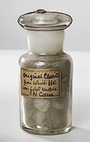 A amostra de cleveita da qual Ramsay purificou o hélio pela primeira vez, na coleção da University College London[1]