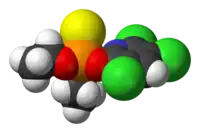 Clorpirifós (IUPAC nome: O,O-dietil O-3,5,6-tricloropiridin-2-ol fosforotioato) é um inseticida cristalino da classe dos organofosforados que inibe a transmissão dos receptores causando envenenamento por colapso do sistema nervoso do inseto. É utilizado para controlar vários tipos de insetos, e é conhecido por vários nomes de marca registada. O clorpirifós é moderadamente tóxico e a exposição crónica relacionou-se com efeitos neurológicos, transtornos do desenvolvimento e transtornos autoinmunes, [5] atrasos e problemas no desenvolvimento de crianças[6]. Em 2001 nos EUA a empresa DOW voluntariamente abdicou da licença para uso doméstico, pois assim reduziria o risco de crianças serem expostas ao inseticida. A União Europeia rejeitou a renovação da licença de venda ao público a partir de fevereiro de 2020.[7]