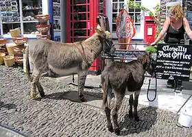 Asnos na rua principal do vilarejo, em frente à agência postal.