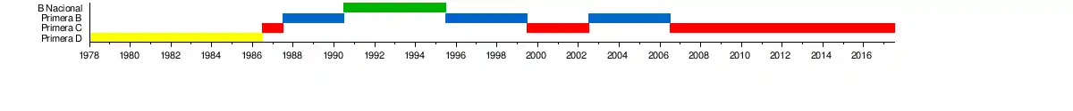 - Primera C: 16 (1986–87, 1999–00 a 2001–02 e 2006–07 até hoje)