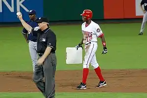 - Soriano, que jogava como segunda base exclusivamente entre 2001–2005, foi movido para o campo esquerdo em 2006 (o que, coincidentemente, foi sua temporada 40-40).[7]
