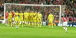 A cobrança de falta normalmente é cobrada por algum jogador pré-determinado pelo treinador, que possui a habilidade para o arremate desse tipo. Geralmente os jogadores de meio-campo são escolhidos para essa função, mas jogadores de linha de posições defensivas, como Roberto Carlos (lateral), Ronald Koeman (zagueiro) e Fernando Hierro (zagueiro ou volante), e mesmo goleiros, como Rogério Ceni e o paraguaio José Luis Chilavert, também foram destaque neste tipo de gol.