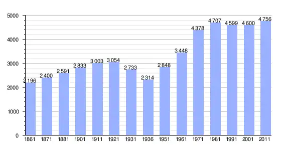 | Variação demográfica do município entre 1861 e 2011[3] |