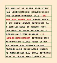 Idioma Nórdico antigo e alguns trechos em dinamarquês antigo.