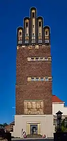 Construída em 1908, por Joseph Maria Olbrich. Está localizada na rua Olbrichweg, nº 11. A torre ficou conhecida como Fünffingerturm (Torre de cinco dedos, em português). A torre foi construída como presente para o Grão-Duque Ernst Ludwig de Hesse pelo seu segundo casamento, com Eleonore von SolmsHohensolms-Lich. A edificação possui uma arquitetura expressionista, com 48,5 metros de altura e uma área de 81,25 metros quadrados. A base da torre foi feita de concreto armado, o corpo foi feito de alvenaria e na cobertura foi construído cinco cristas escalonada com azulejos vitrificados e folha de cobre. A porta de entrada é de ferro forjado com vidros e possui um brasão colorido dos Grão-Duques de Hesse-Darmstadt. A porta é cercada por um portal retangular decorado com medalhões de flores sobre fundo dourado, projetado por Friedrich Wilhelm Kleukens. Logo acima da base, no corpo da torre, foi instalado uma placa de arenito com uma árvore de galhos largos, o brasão do casal Grão-Ducal, quatro figuras femininas representando a força, a sabedoria, a justiça e a clemência, e a inscrição "Zum Gedächtnis der Vermählung J.J.K.K.H.H. des Großherzogs Ernst Ludwig und der Großherzogin Eleonore errichtet von der Stadt Darmstadt ano 1907-1908" (Suas Altezas Reais Grão Duque Ernst Ludwig e Grão-duquesa Eleonore erguidos pela cidade de Darmstadt nos anos 1907-1908, em português) esculpida em relevo por Heinrich Jobst. Ainda no corpo da torre, foram instaladas duas faixas de janelas de esquina, com molduras de arenito. Na cobertura, nas laterais mais largas, foram instaladas varandas individuais para observação. Nas laterais estreitas da torre, no ano de 1914, foram instalados relógios projetados por Albin Müller, o segundo diretor da colônia. A torre possui quase tudo original, pois durante a Segunda Guerra Mundial somente o telhado sofreu danos, que foi restaurado.[1][3]