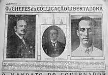 Os três líderes da Coligação Libertadora, Antônio Ramos Caiado, Alfredo Lopes de Moraes e Domingos Neto de Vellasco.