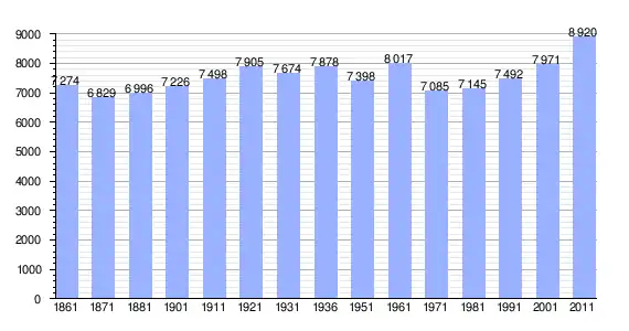 | Variação demográfica do município entre 1861 e 2011[3] |